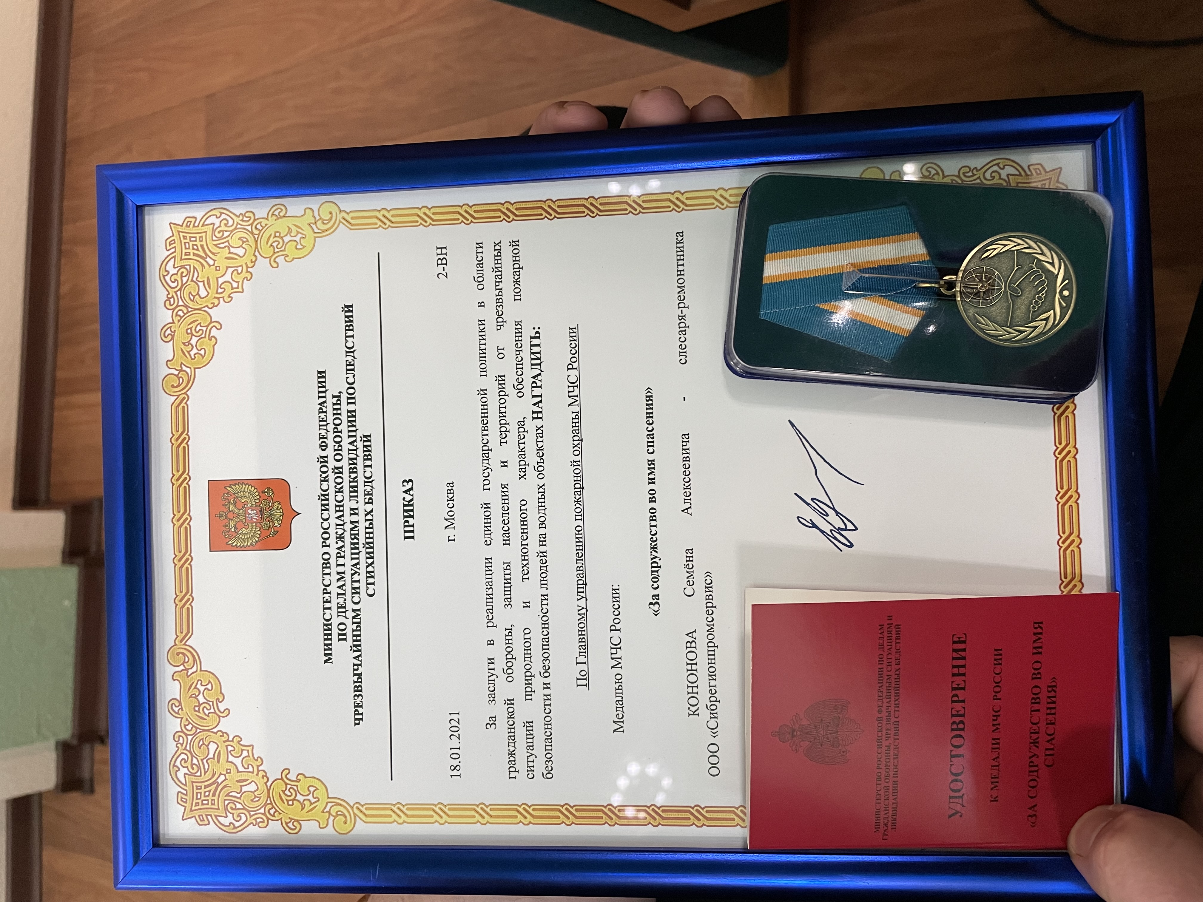 За заслуги в укреплении содружества во имя спасения, оказания существенной помощи МЧС России в реализации поставленных целей и задач Кононов Семен Алексеевич награжден медалью МЧС России «За содружество во имя спасения».